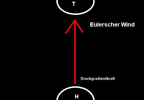 Der Wind ist ein Ausgleich für die bestehenden Luftdruckunterschiede auf unserem Planeten. Der Wind entsteht nun durch verschiedene Kräfte, die hierbei zum Tragen kommen. Eine der wesentlichsten Kräfte ist die Druckgradientkraft. Sie ist bedingt durch die Luftdruckunterschiede zwischen Hochdruckgebieten und Tiefdruckgebieten. Die Druckgradientkraft ist gerichtet vom hohen Druck zum niedrigen Druck, also vom Hoch zum Tief. Würde man alle anderen Kräfte außen vor lassen und nur diesen Druckausgleichwind beschreiben, spricht man vom "Eulerschen Wind".