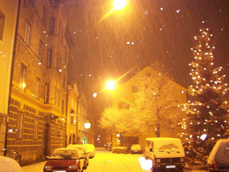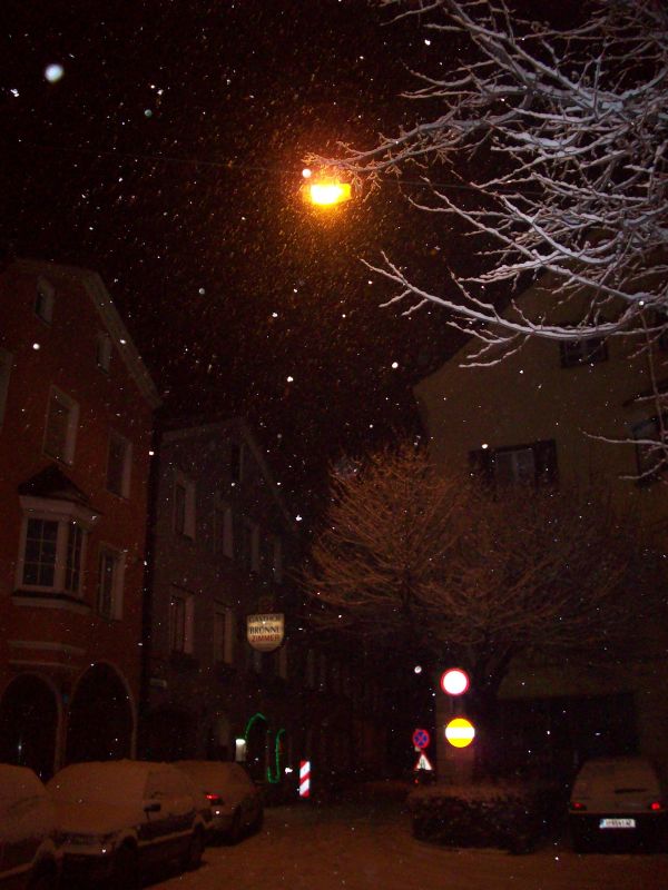 Verschneites Innsbruck in der Silvesternacht