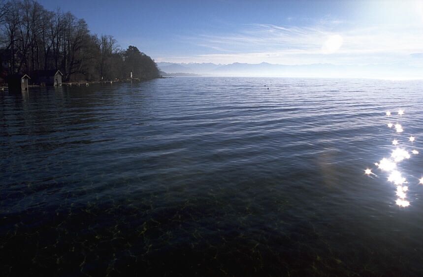 Alpensee, Am Himmel erkennt man Cirrus-Wolken