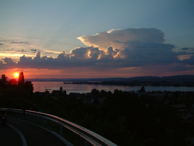 Vollkommener Blick über den sommerlichen Bodensee mit Gewitteramboss nordwärts Richtung Schwarzwald.